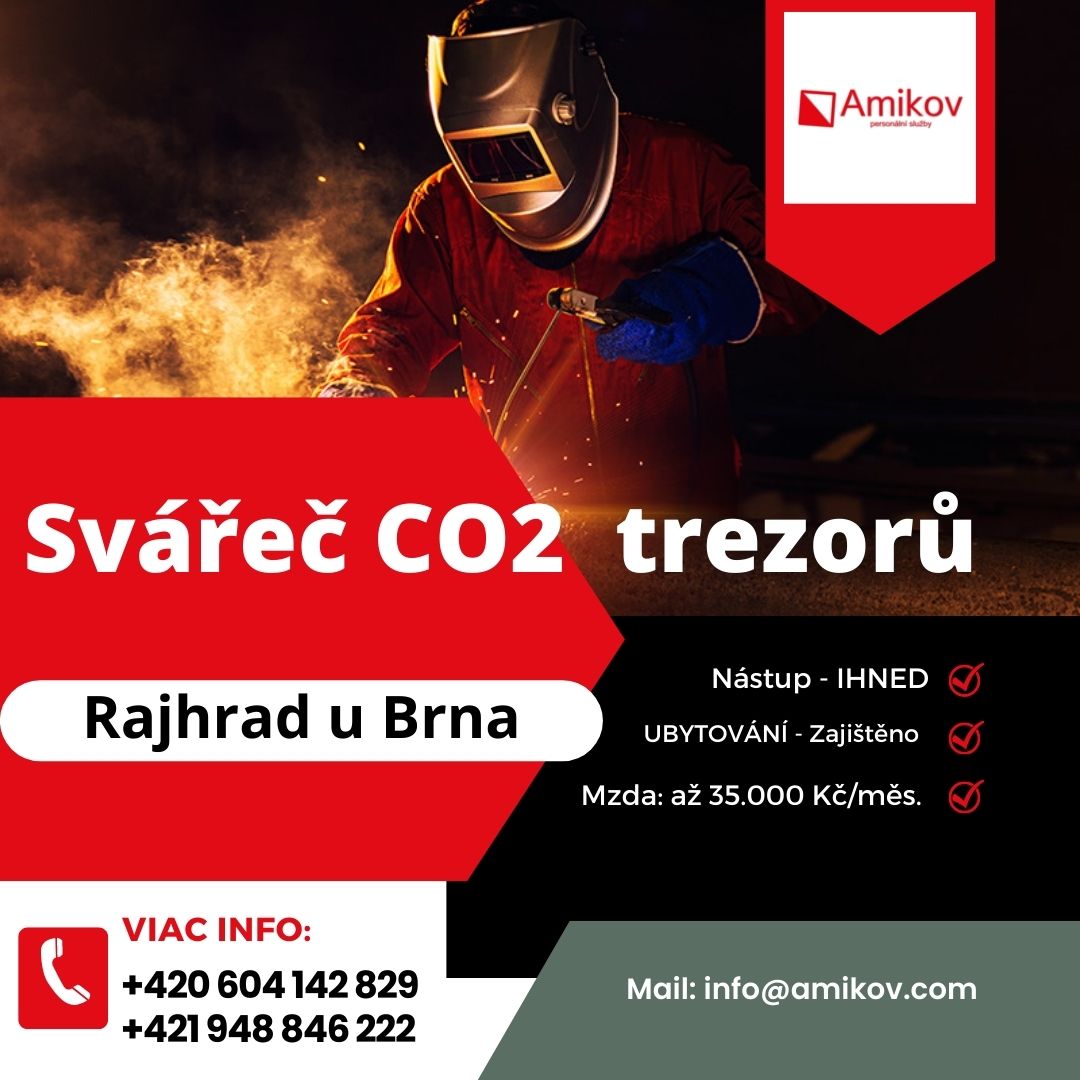 Práce Rajhrad Svářeč Amikov, s.r.o. Rajhrad u Brna - Svářeč trezorů CO2 - možnost Ubytování. Mzda až 35.000 Kč/mes.